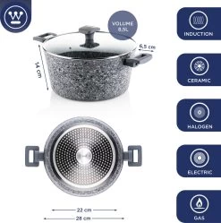 Westinghouse Kookpan/Braadpan Inductie – Ø 28 Cm – Grijs Graniet – Met Deksel – PFOA Vrij