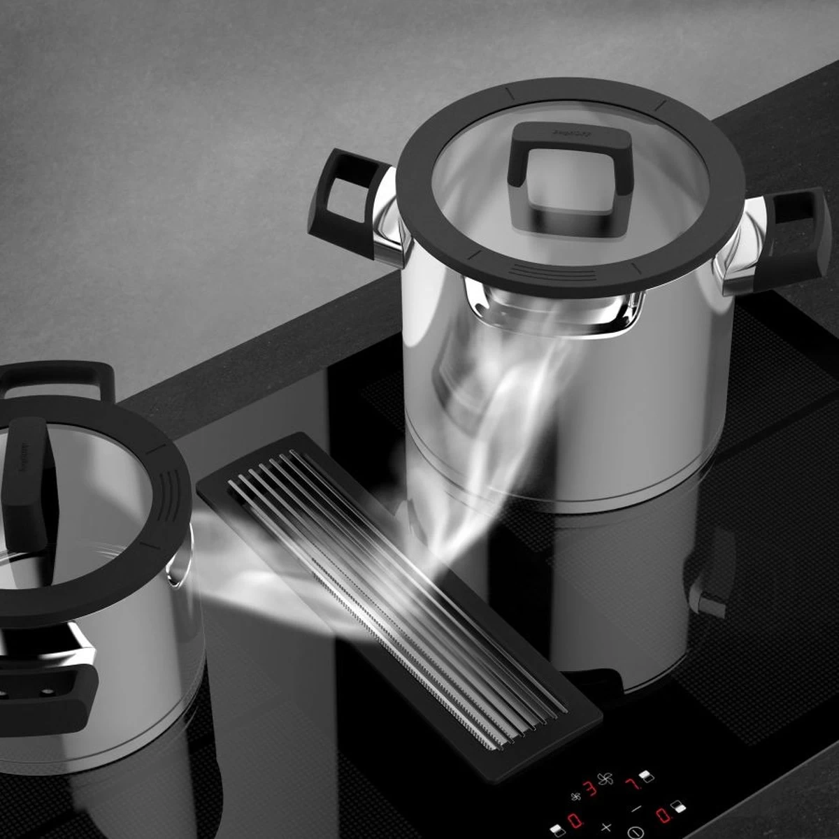 Een gepatenteerde technologie garandeert een optimale stoomafzuiging op je Downdraft kookplaat. De pannen zijn geschikt voor iedere kookplaat en voor ieder afzuigsysteem. De BergHOFF Gem Downdraft pannen kunnen op bijvoorbeeld Bora, Bosch, Siemens en AEG systemen.