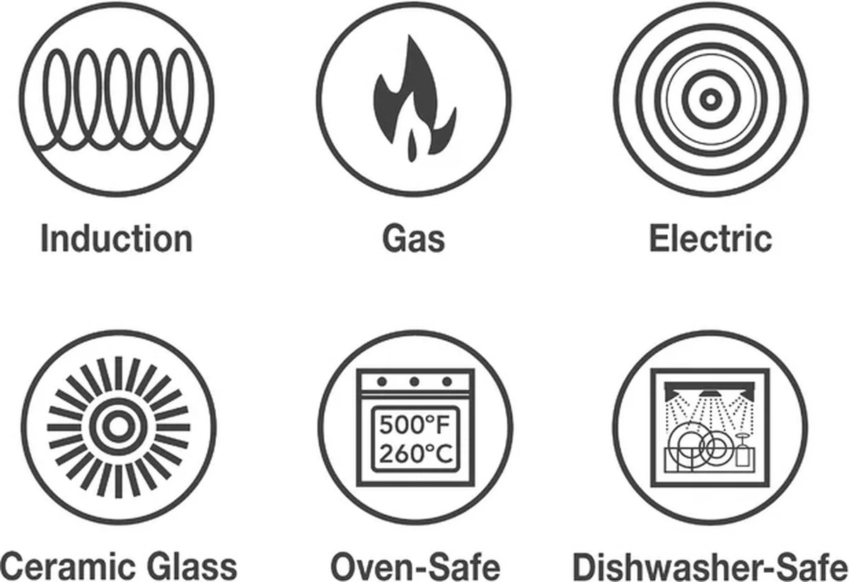 Geschikt voor: Gas, Elektrisch, Geschikt voor alle warmtebronnen, Halogeen, Inductie, Keramisch