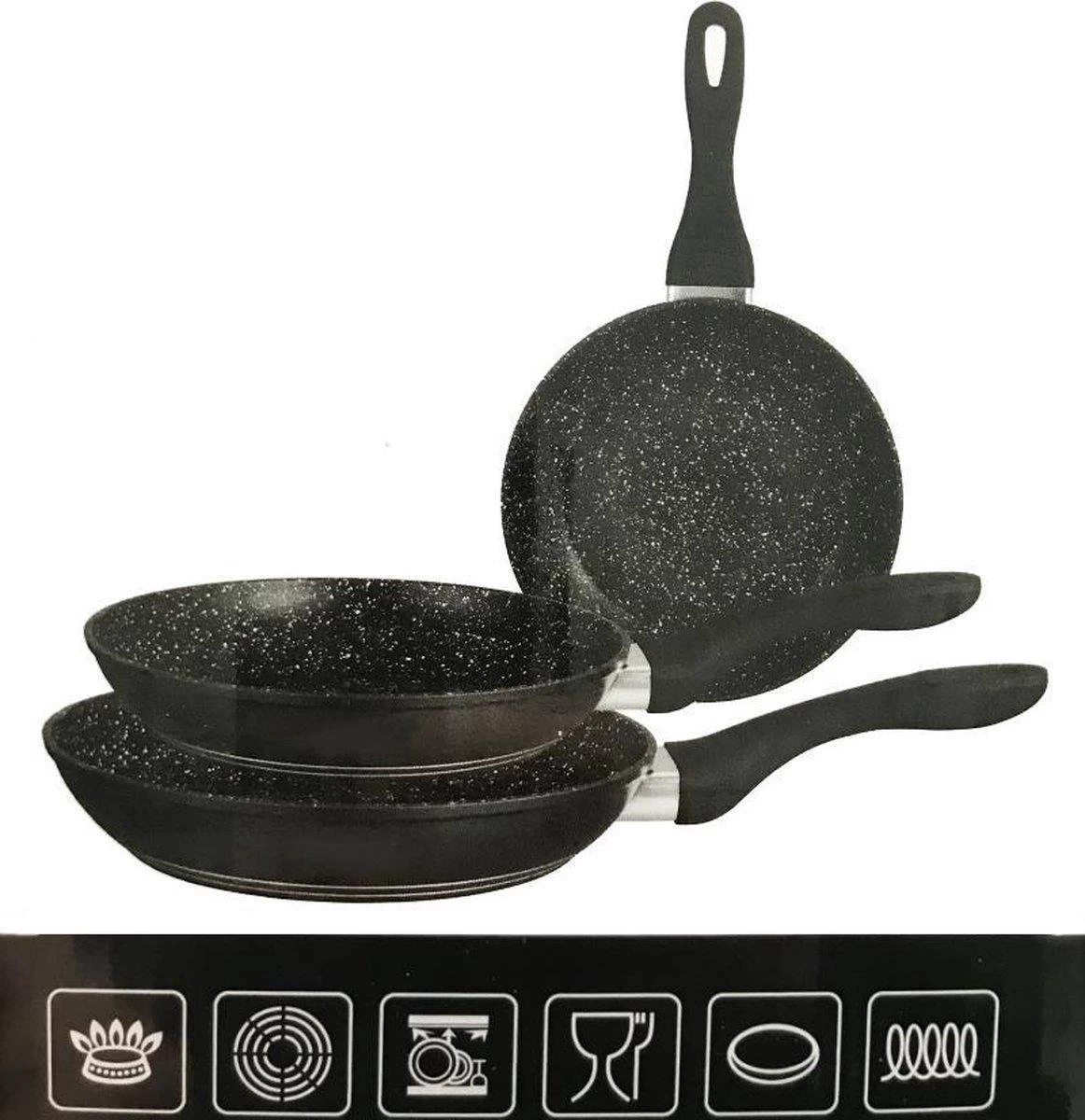Top kwaliteit koekenpan vervaardigd uit aluminium afgewerkt stenen Anti-aanbaklaag. De marmeren coating van de pannen is zonder giftige stoffen zoals PFOA. Deze anti aanbaklaag bakt niet aan, zeer glad en gemakkelijk schoon te maken.