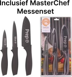 Masterchef Koekenpannen | 3-Delige Koekenpannenset | Inclusief 3 Inclusief Signature Collection Masterchef Messen | Ø 20, 24 En 28 Cm | Geschikt Voor Verschillende Warmtebronnen | Inductie, Elektrisch, Gas En Keramisch Pannenset | Vrij Van PFOA
