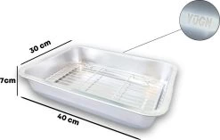 YUGN Braadslede Ovenschaal Braadslee Oven – Braadslede Met Rooster Voor Ovengerechten – Roestvrijstaal En 40x30x7CM – Cadeau Tip